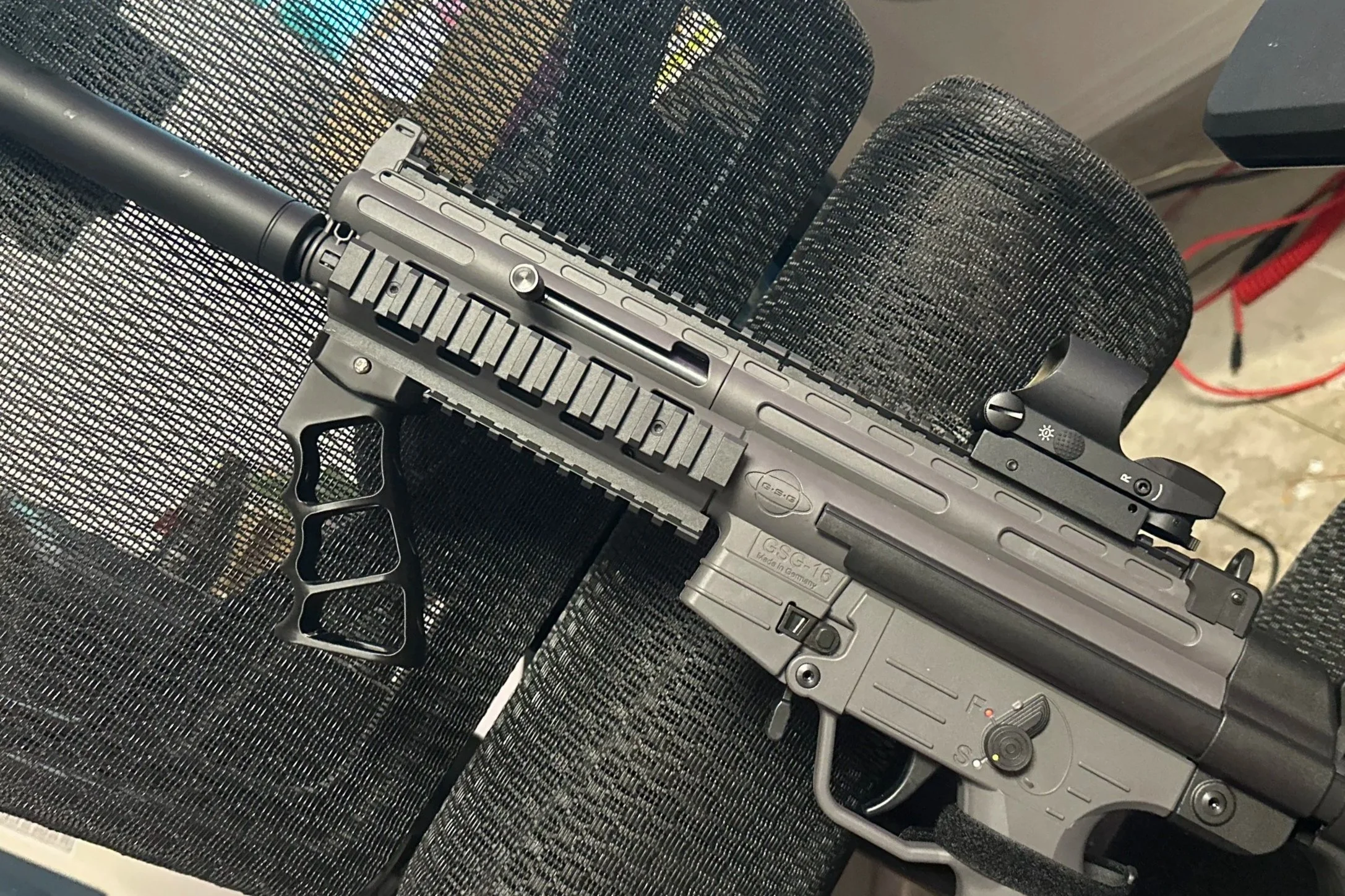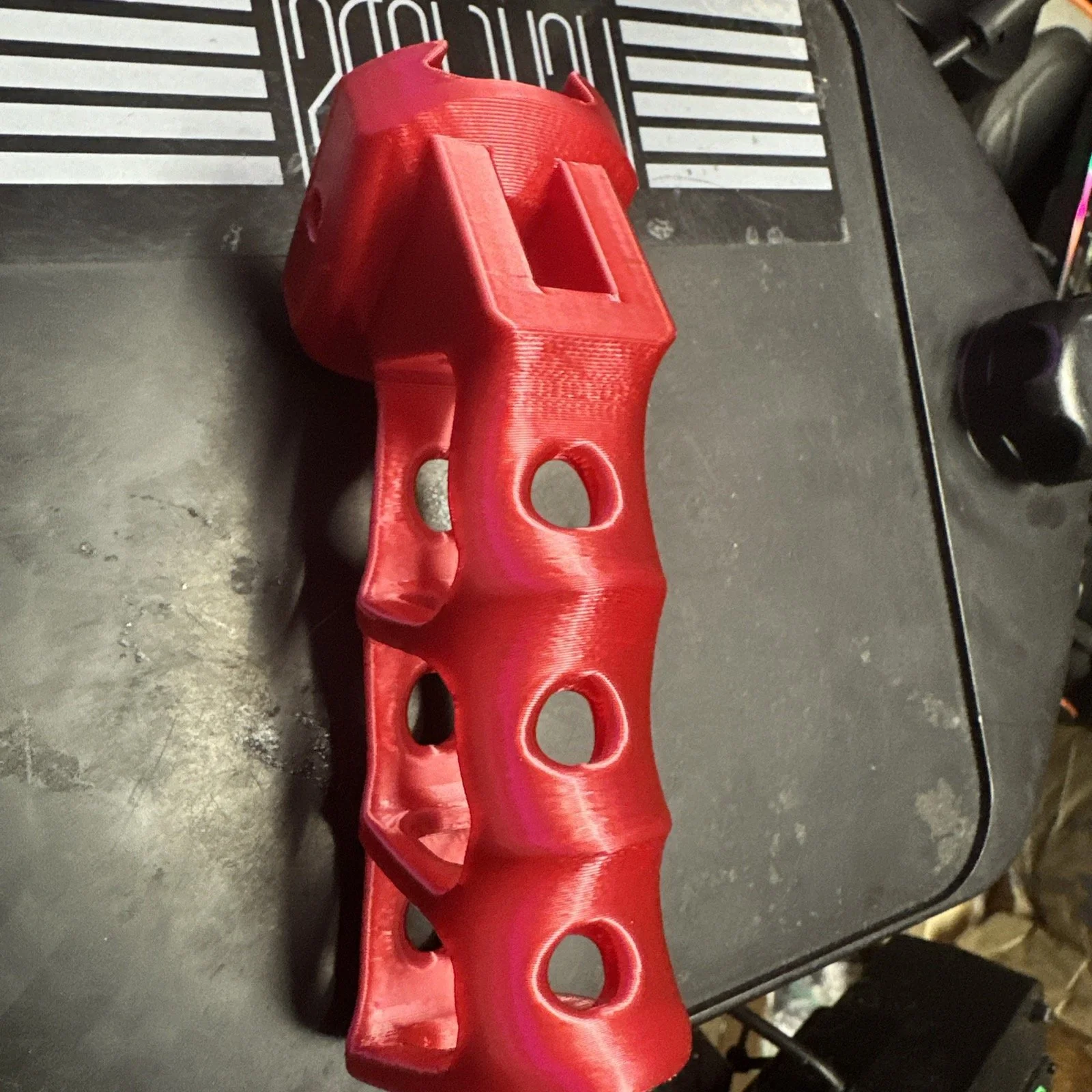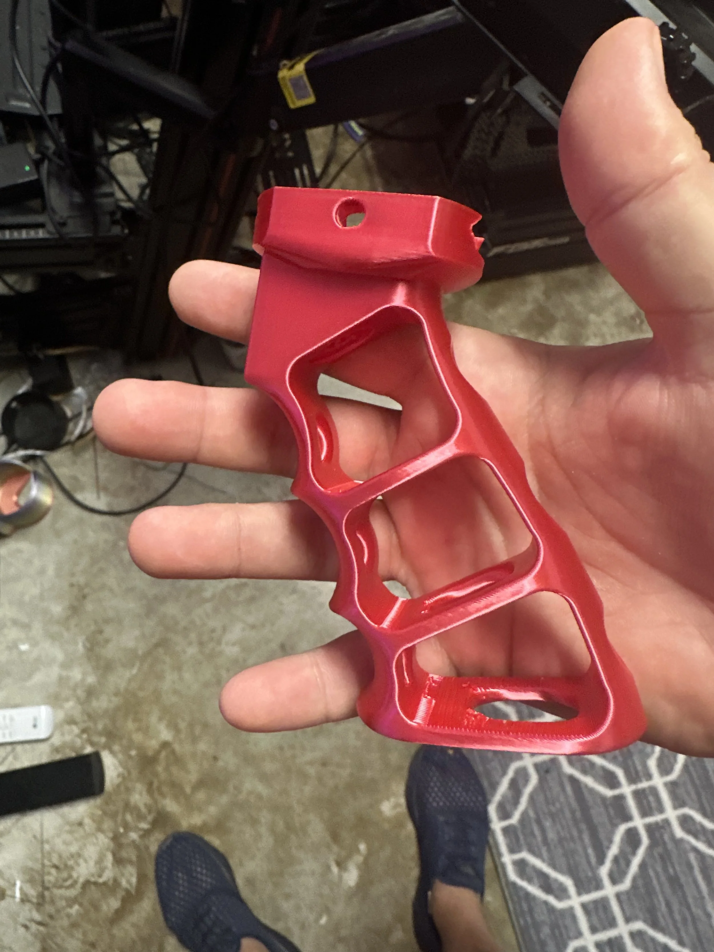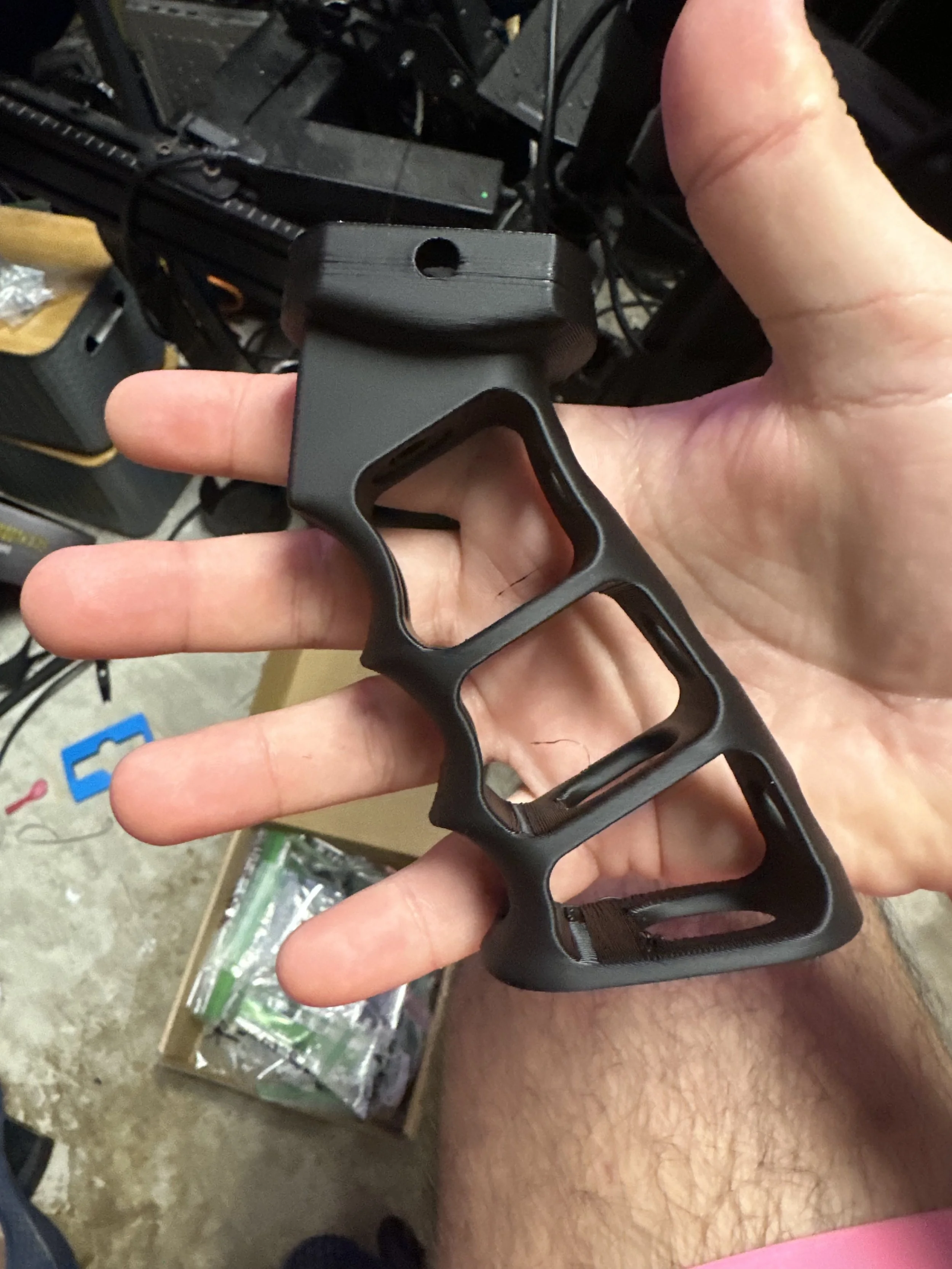 This is a 98% infill chunker. Meant to let you securely hold whatever you’ve got with a Picatinny Rail- But with both hands.